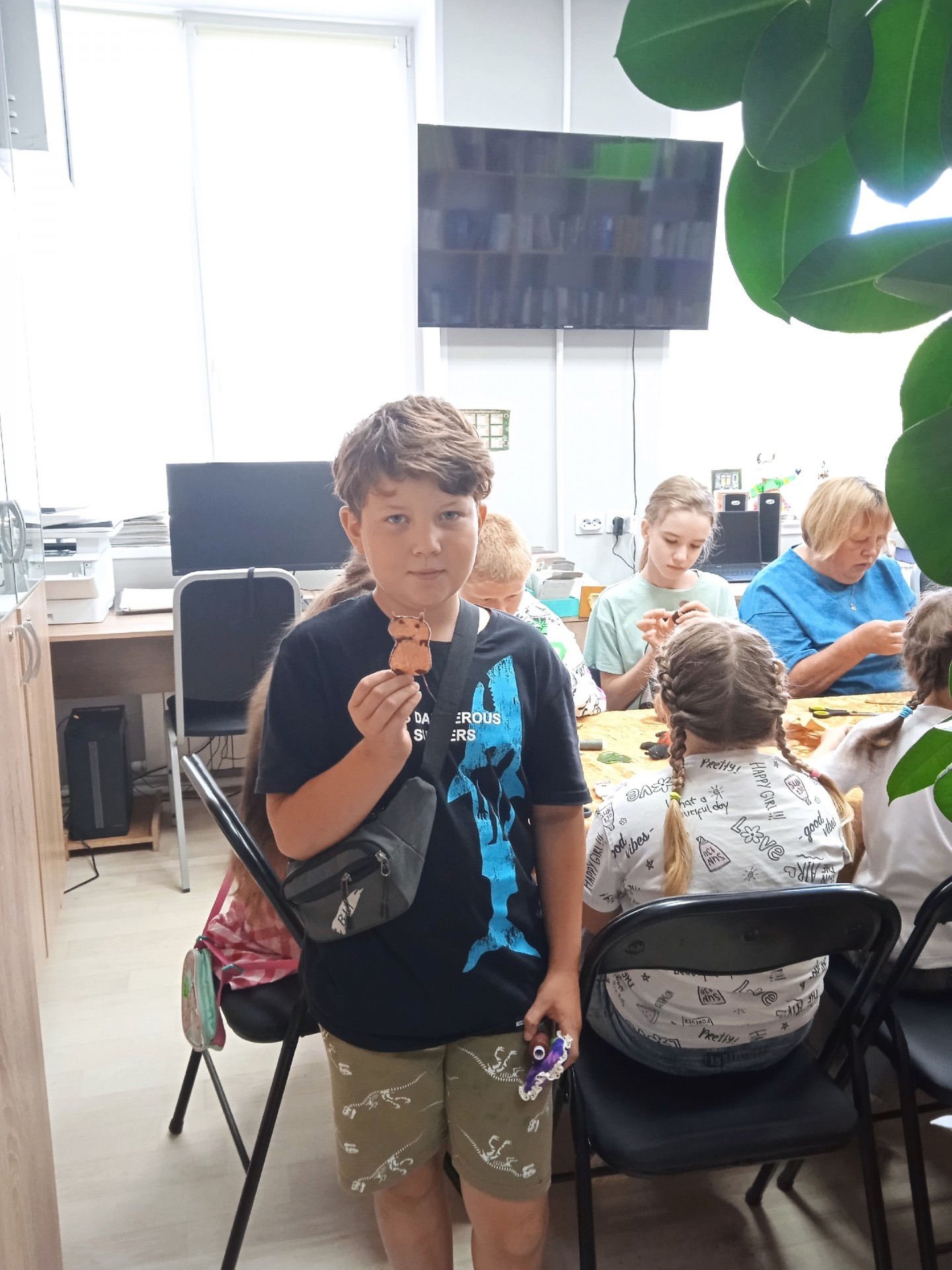 13 августа, в библиотеке собрались дети и взрослые - все те, кто хотел попробовать свои силы в изготовлении броши "Капибара".