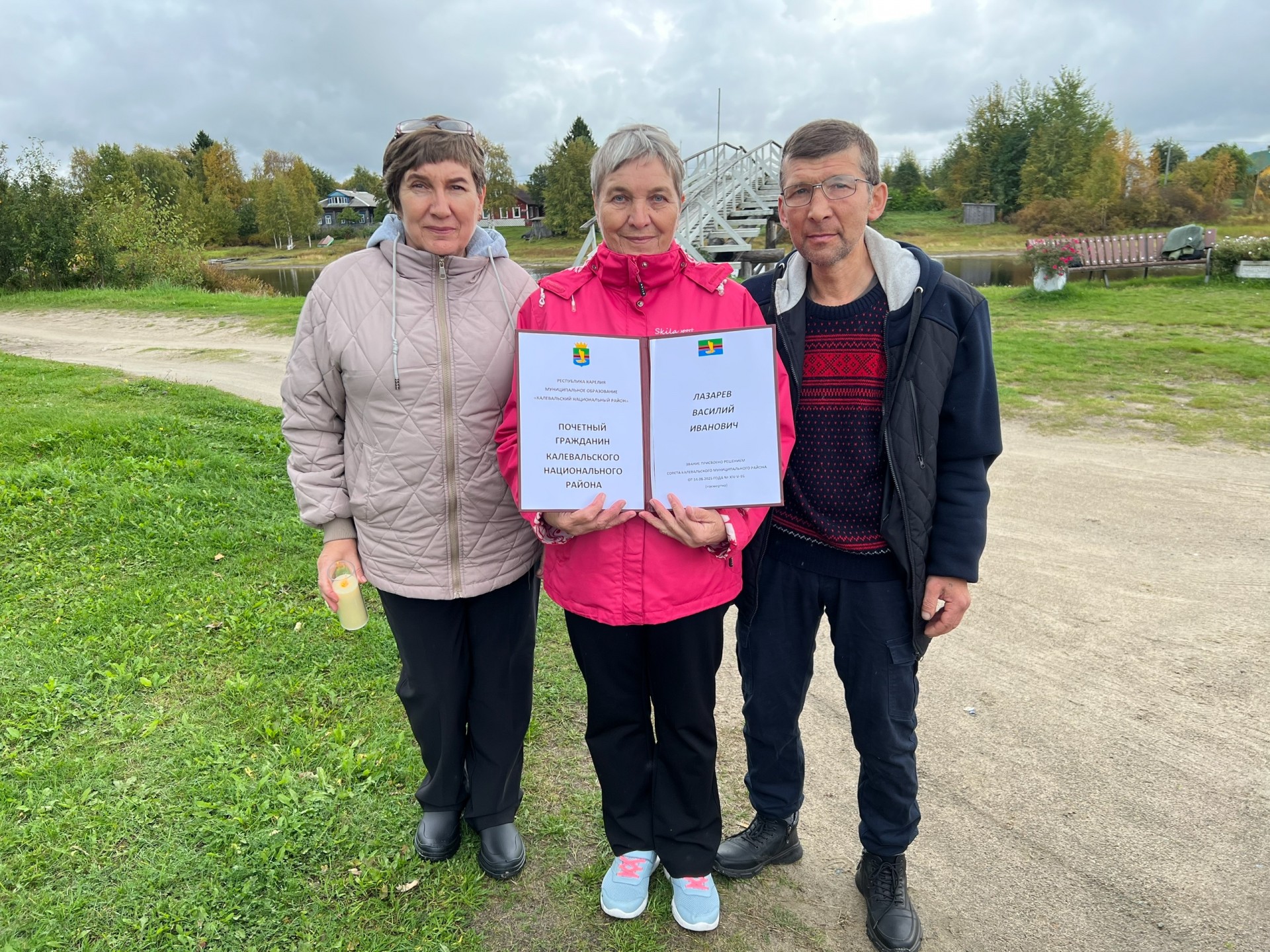 Одним из которых был Лазарев Василий Иванович- кавалер 3х орденов Славы Героя. Депутатом Юшкозерского сельского поселения А. С. Кардановым был передан документ о присвоении Лазареву Василию Ивановичу звания" Почётного гражданина Калевальского национального района " - посмертно.