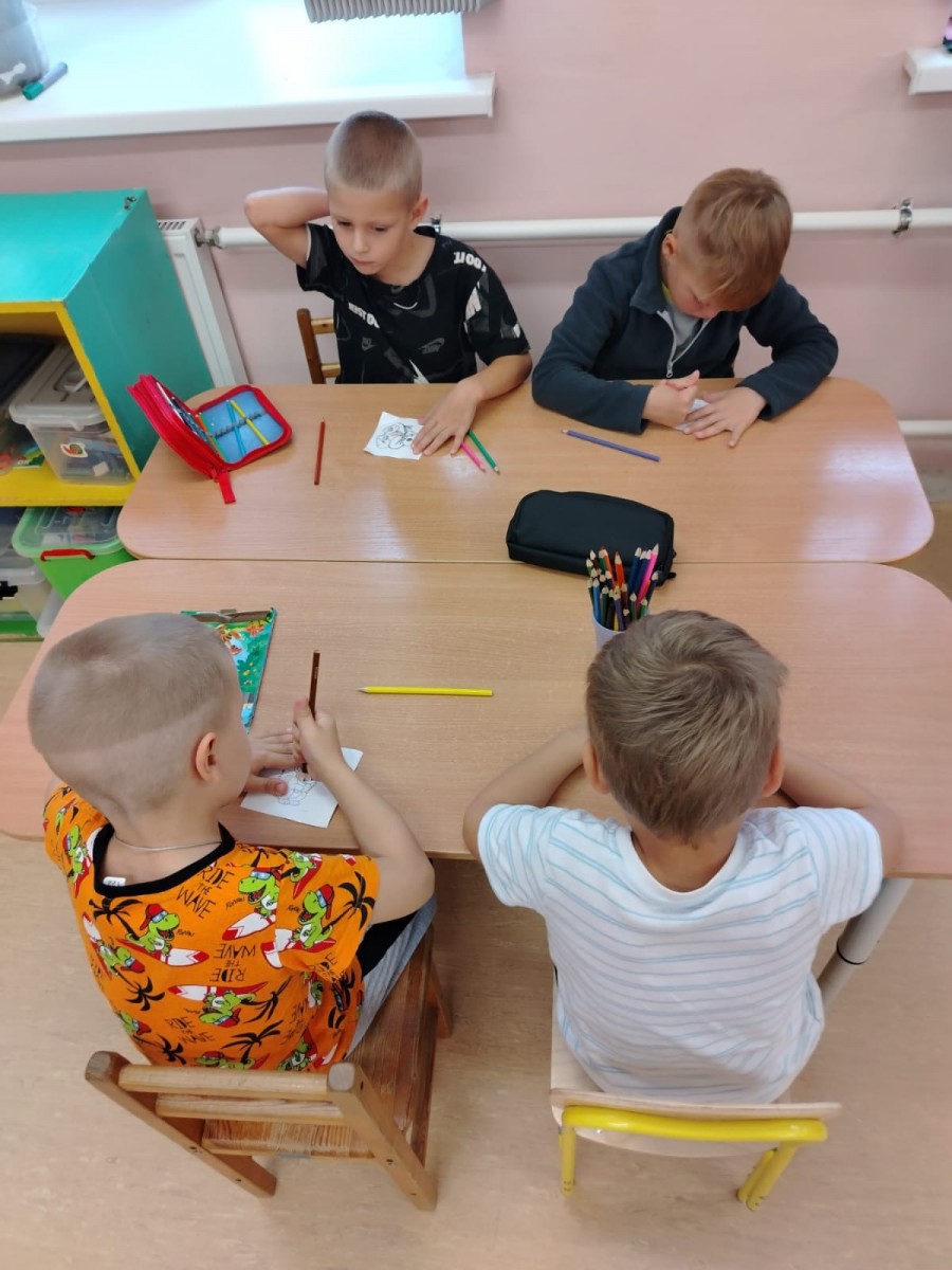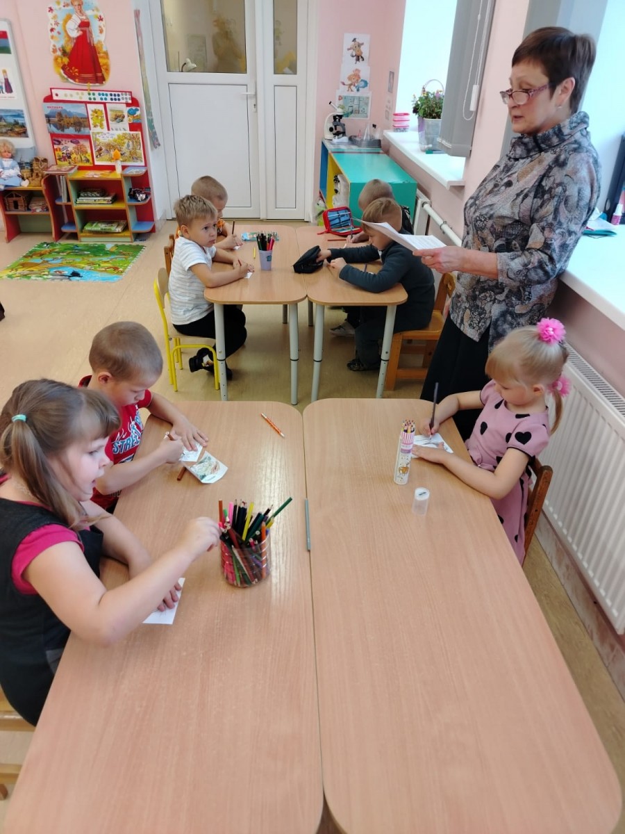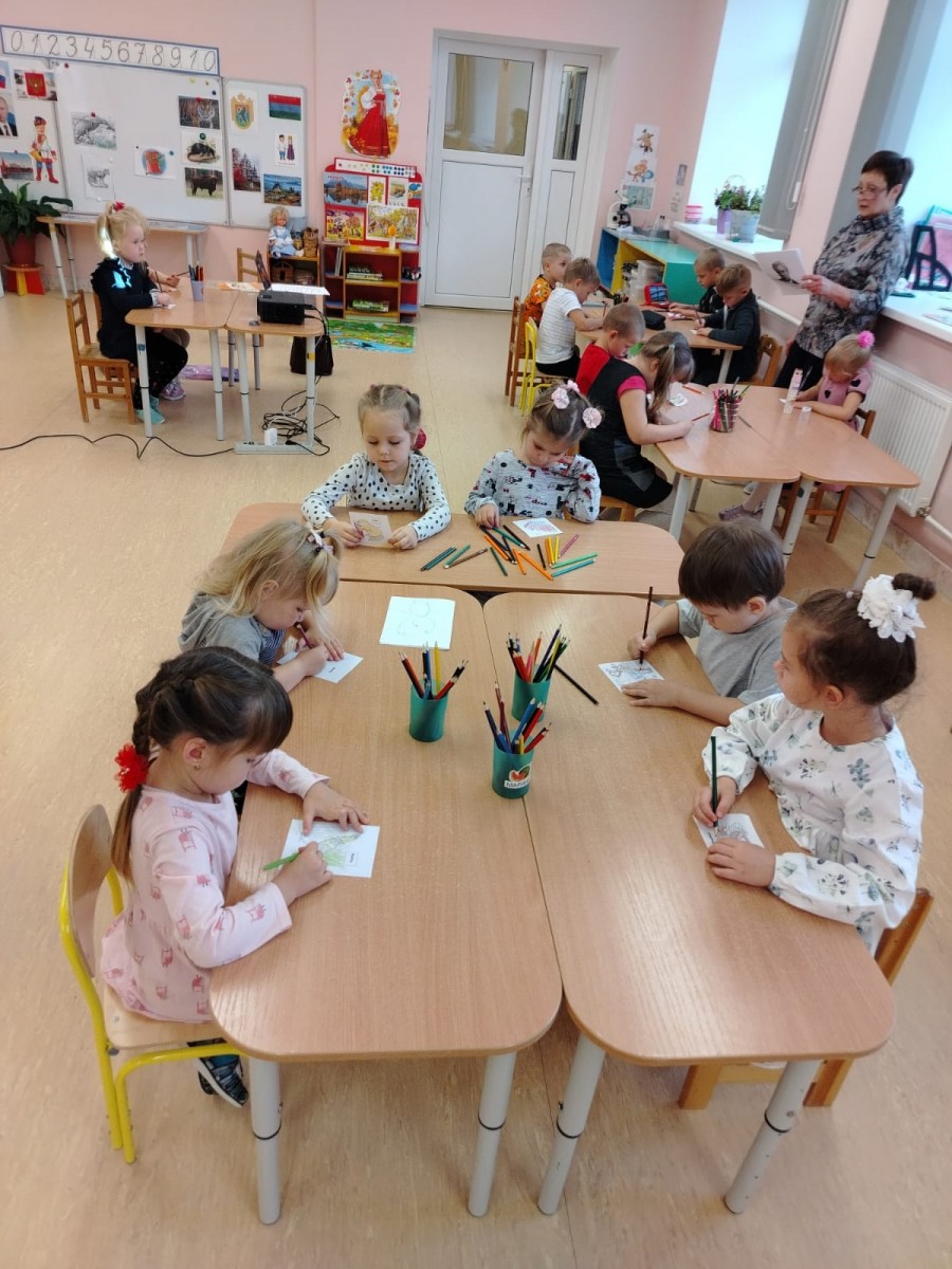После этого дети раскрашивали изображения животных, а Нина Михайловна прочитала им рассказ Георгия Скребицкого "Пушок".