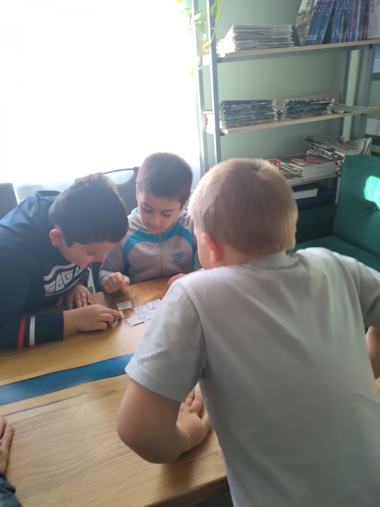 Ребята поделились на две команды и выполняли задания. За каждый правильный ответ команды получали жетоны.