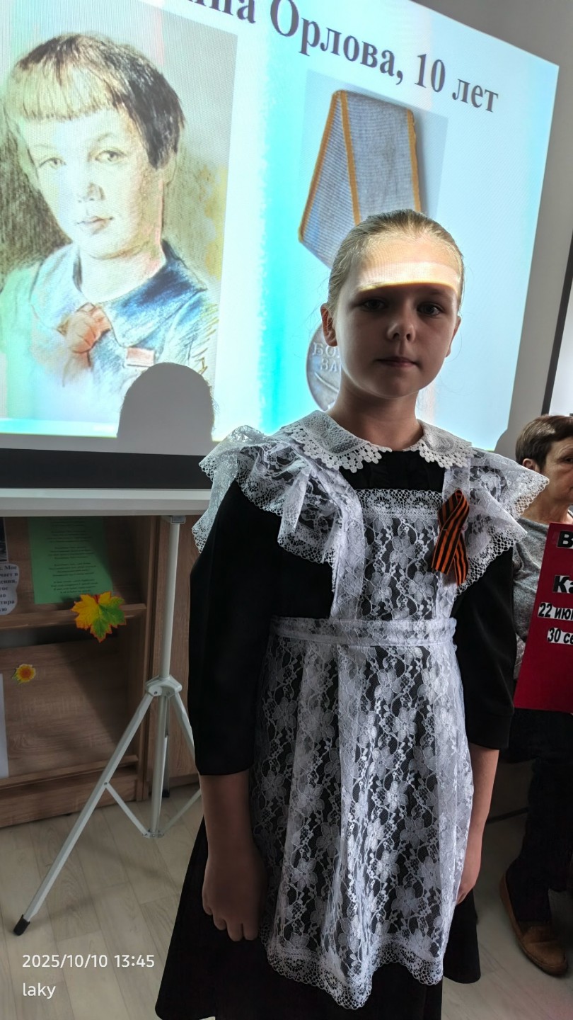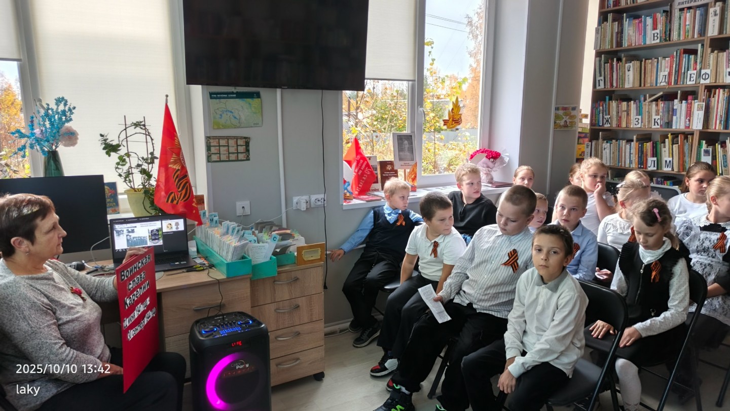 Ребята послушали песню «Снежная песня» о солдатах Карельского фронта, посмотрели сюжет киножурнала №80 за 1942 года о пионерке Лине Орловой и отрывок из фильма «А зори здесь тихие».