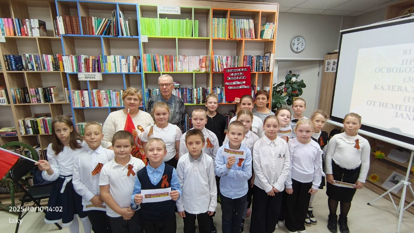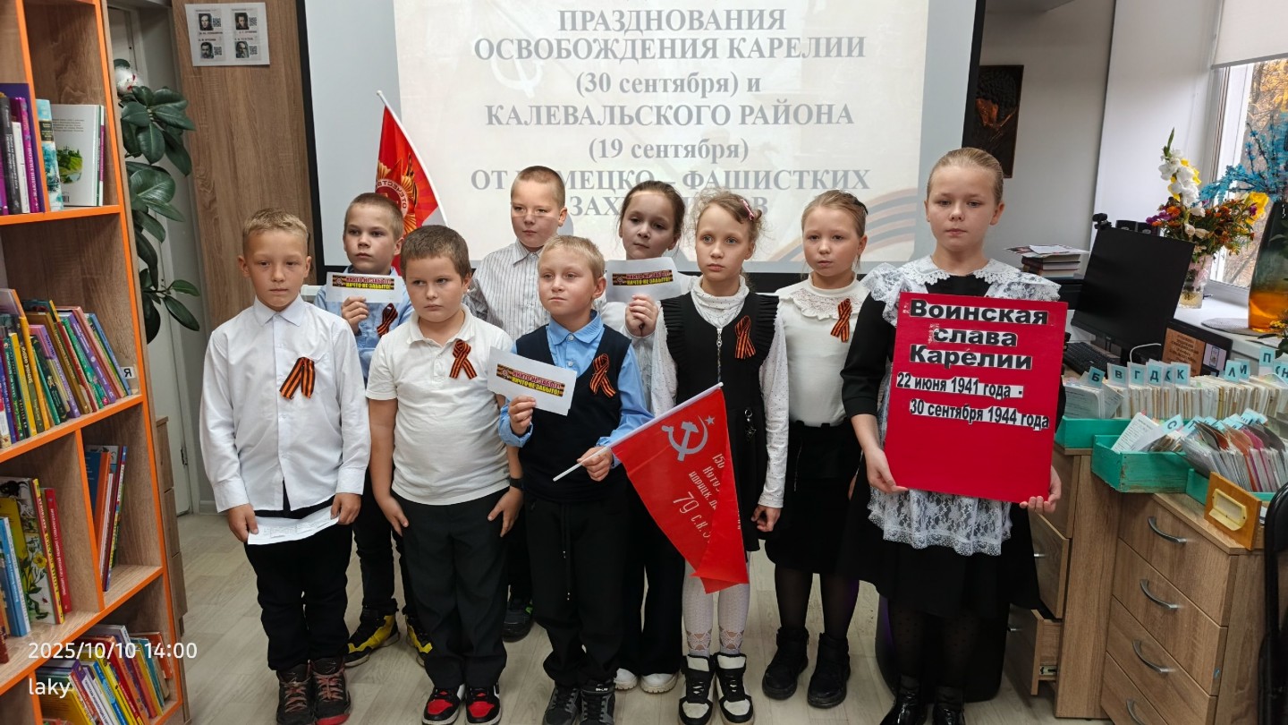 В мероприятии приняли участие ученики 4 класса и их классный руководитель С. В. Ватанен. Ребята «листали» воображаемую книгу, посвященную Великой Отечественной войне на территории Карелии.