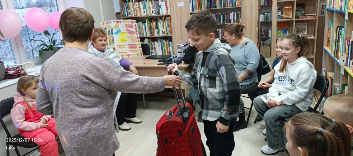 Кроме этого, сотрудники библиотеки предложили ребятам поиграть в игру-искалочку. В огромном чемодане были собраны сказочные предметы! Ребятам нужно было ответить на вопрос и определить: из какой книги этот предмет!