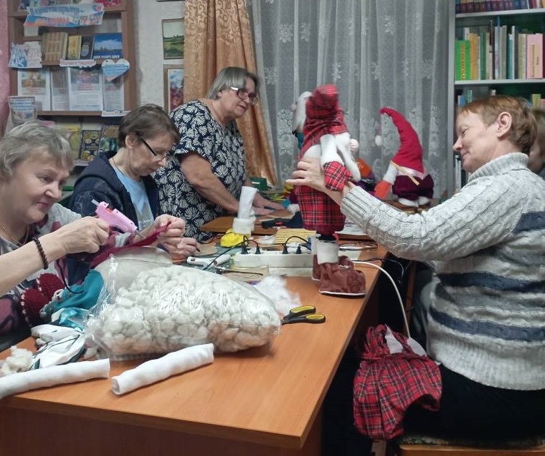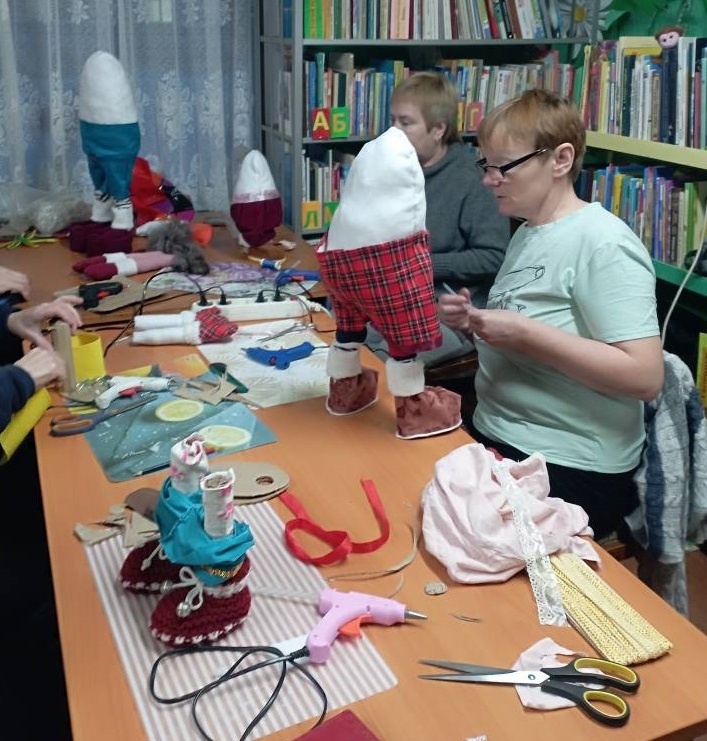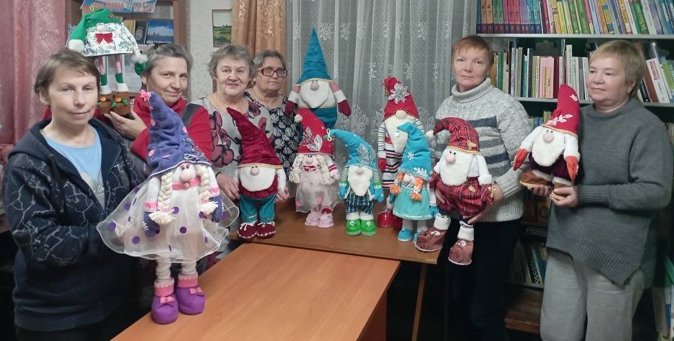 В Луусалмской библиотеке царила творческая предновогодняя атмосфера. Три воскресенья подряд мастерицы создавали новогодних гномов, погружаясь в процесс с радостью. Они шили, клеили, кроили, используя простые материалы. Фантазия била ключом, а участницы активно делились опытом и идеями, помогая друг другу.