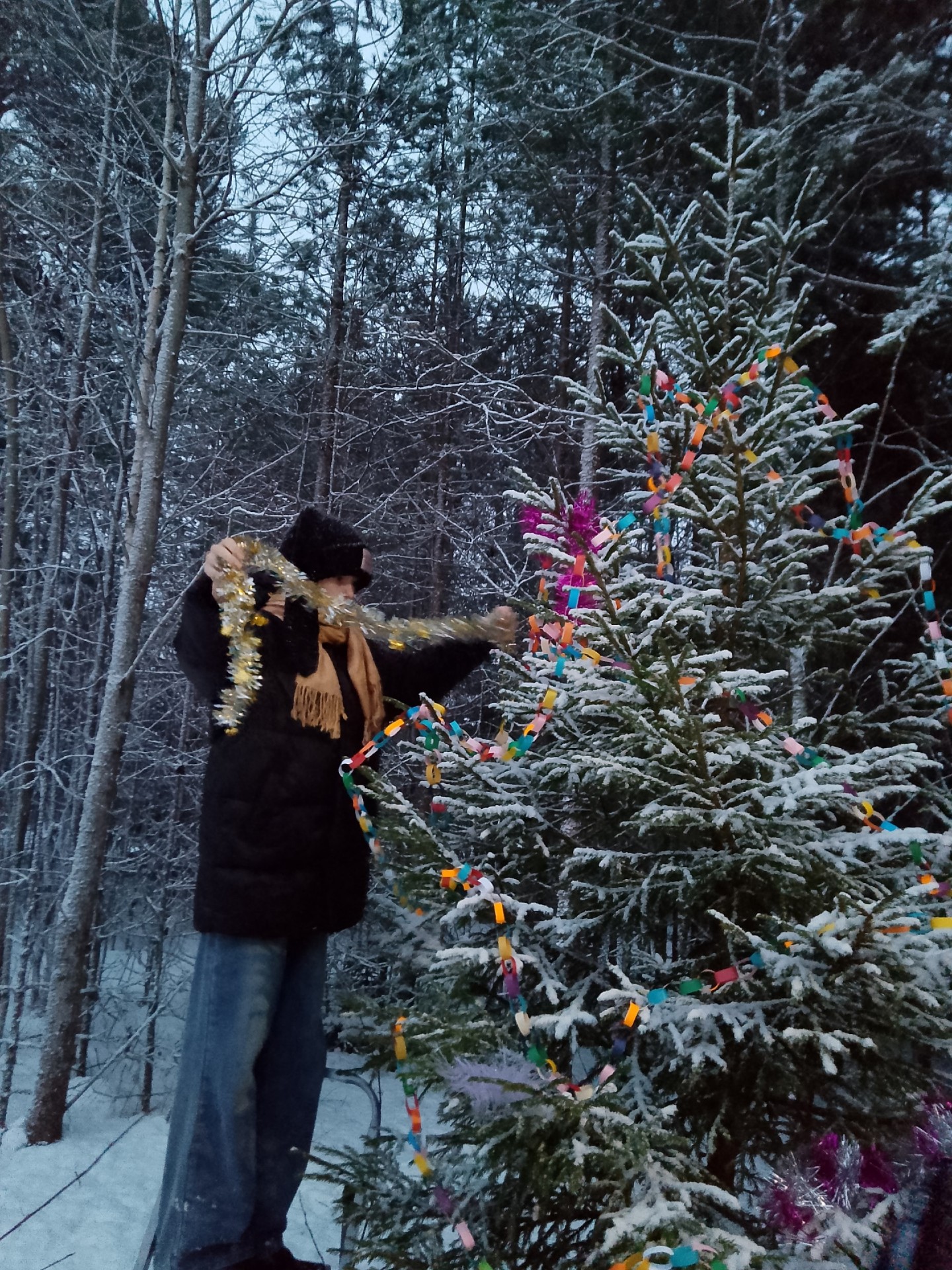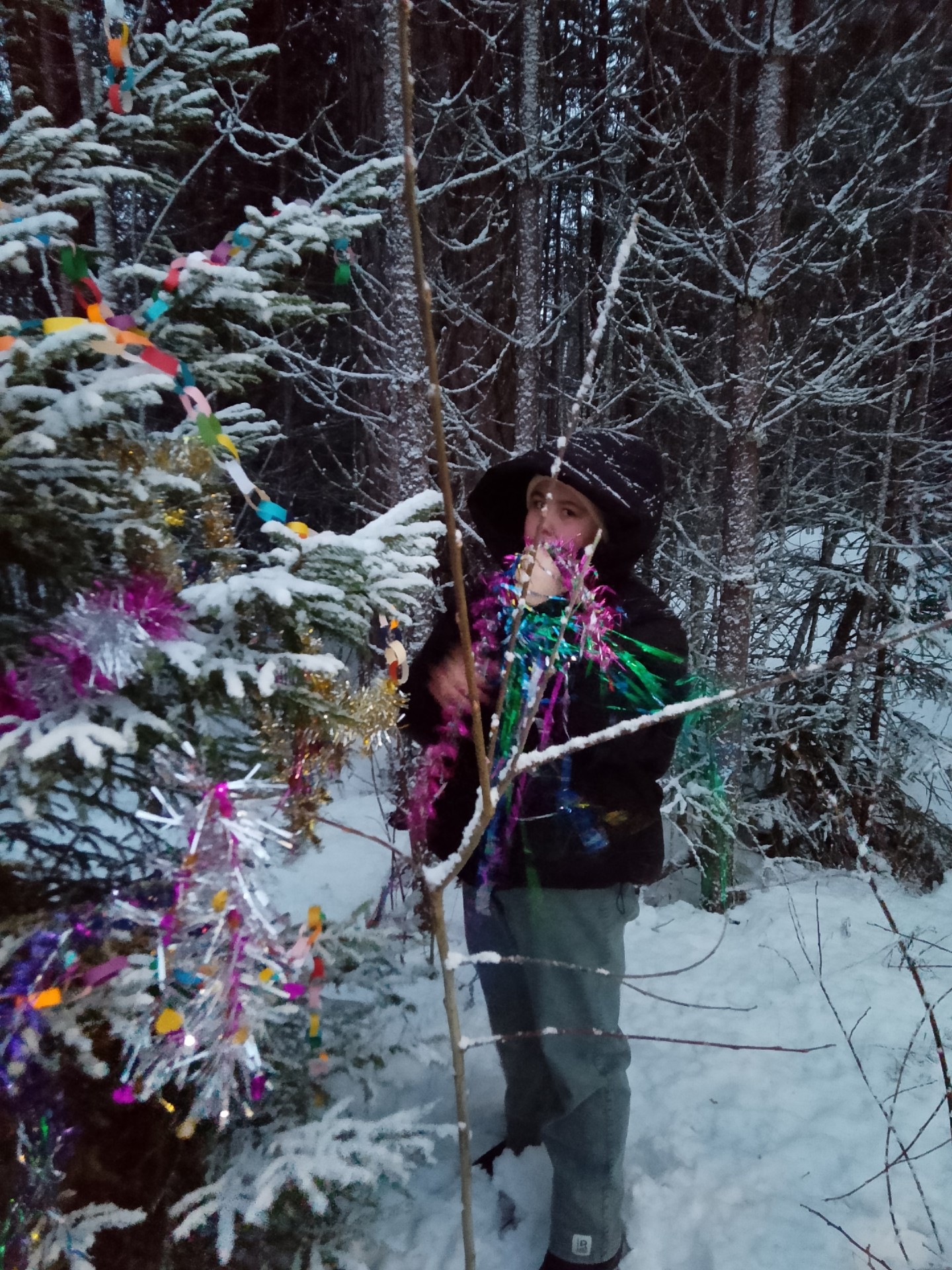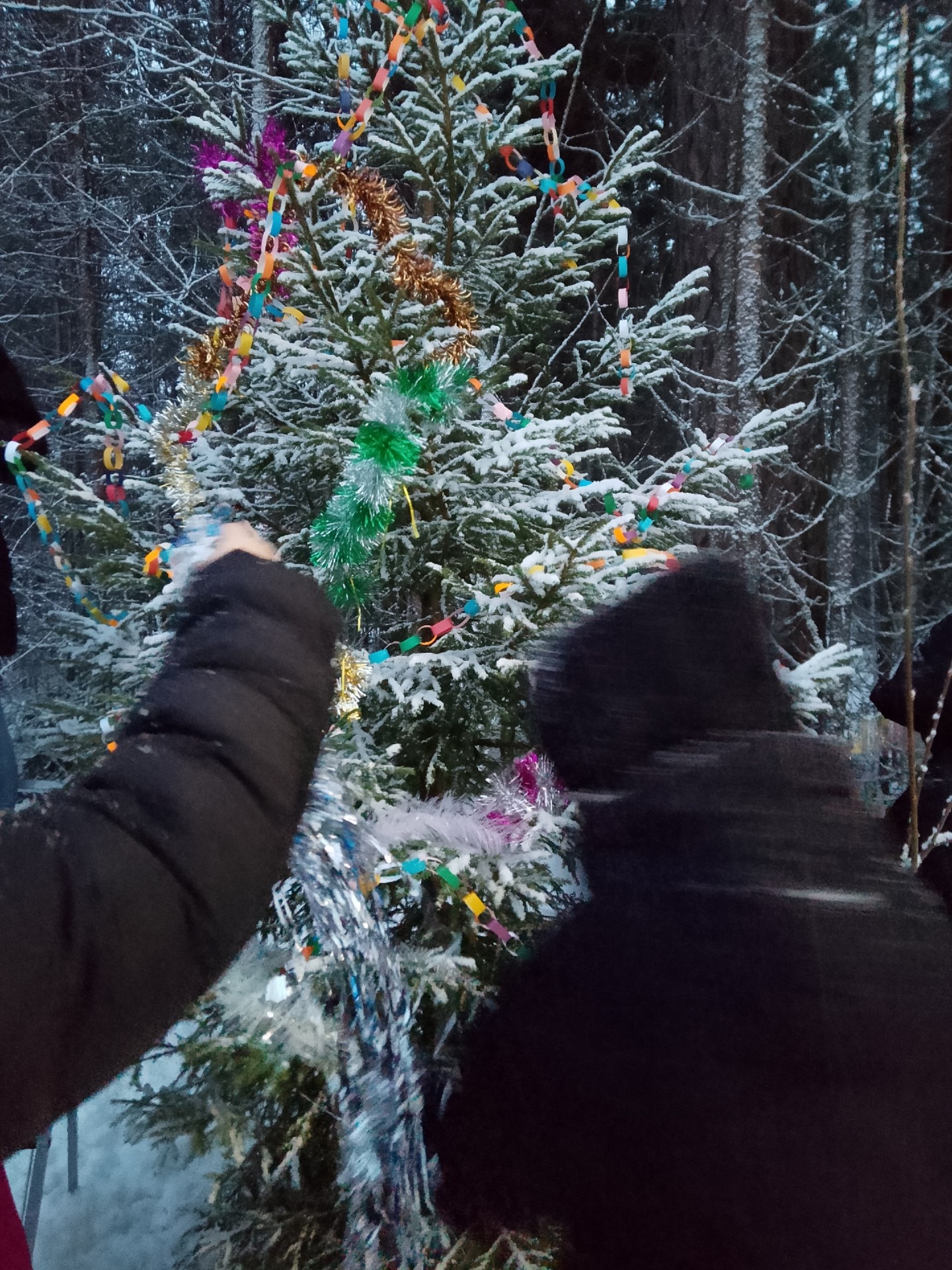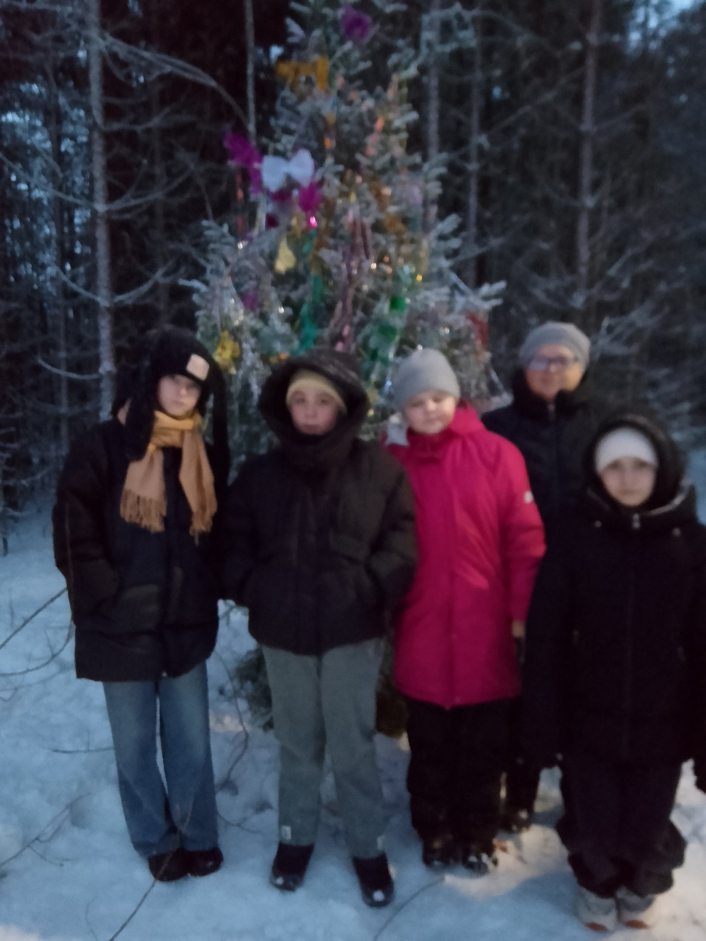 Дети рассказали о своих любимых ёлочных игрушках, отгадывали зимние загадки, вспоминали волшебные новогодние сказки. А после мероприятия всё вместе пошли на улицу, и украсили возле Дома культуры, праздничную красавицу - ёлку!