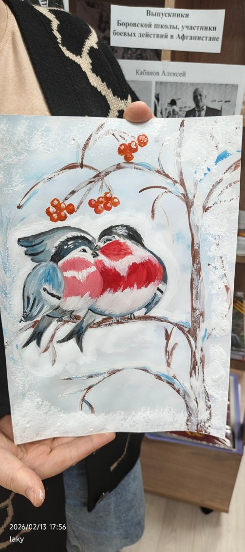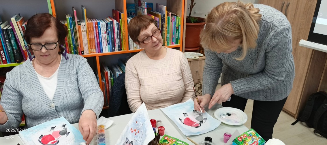 На этот раз участницы рисовали композицию на тему "Снегири".
