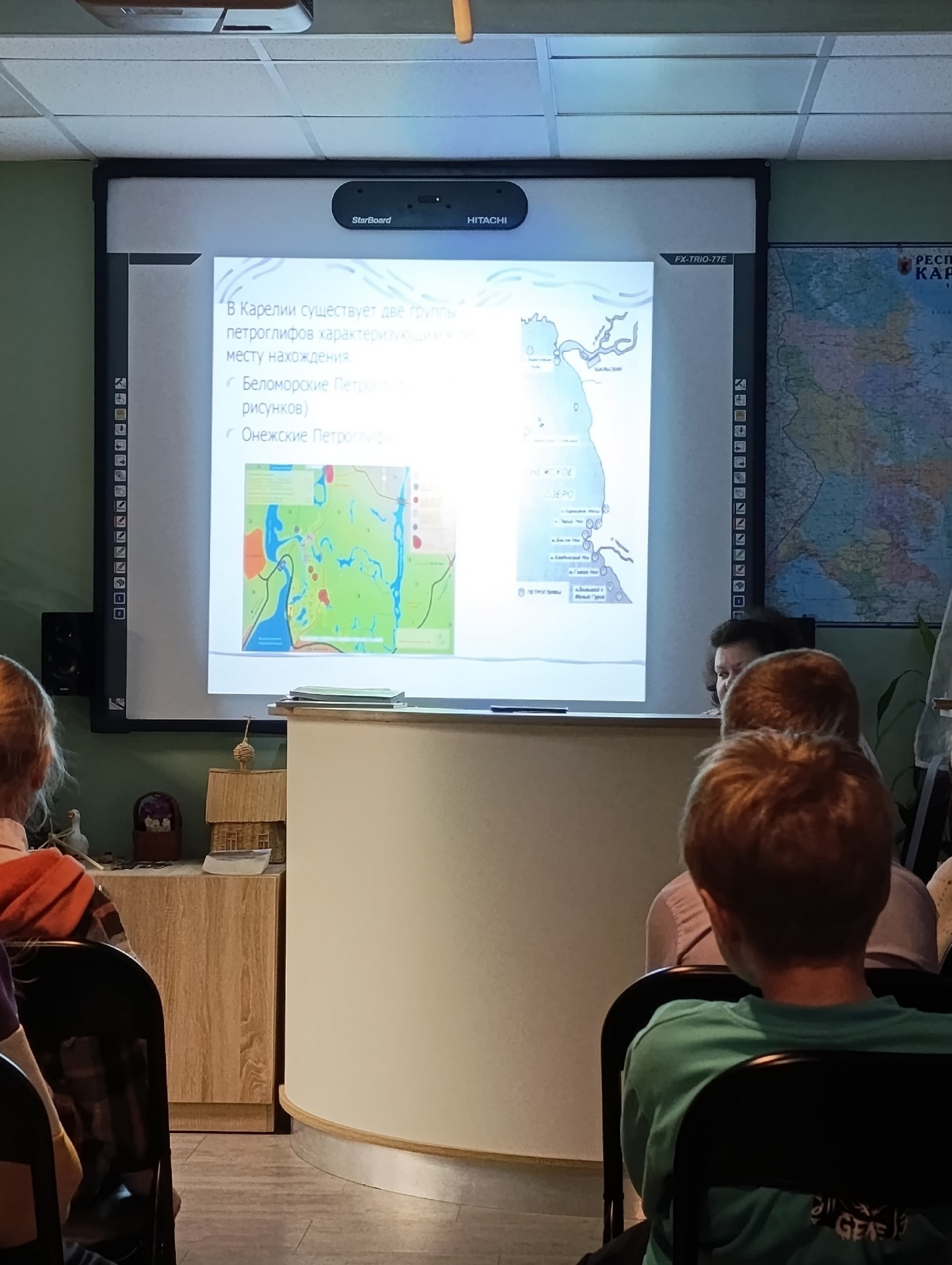 Встреча началась с захватывающего рассказа библиотекаря о том, что такое петроглифы — древние рисунки, выбитые или нанесённые краской на скалах. Ребята узнали, где в мире и на территории нашей страны можно найти такие изображения, когда они появились и какую роль играли в жизни первобытных людей.